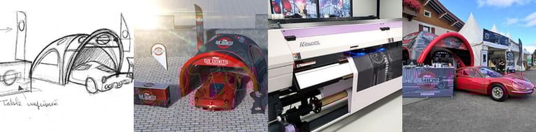 Als Experte für den Stoff- und Planendruck garantieren wir eine hochwertige Verarbeitung bei allen individuell bedruckten Faltpavillons und Werbedisplays, die wir herstellen.