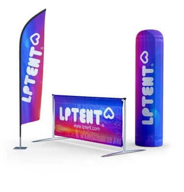 Eine große Auswahl an leicht aufzubauenden Faltpavillons, aufblasbaren Zelten und Marketing-Displays
