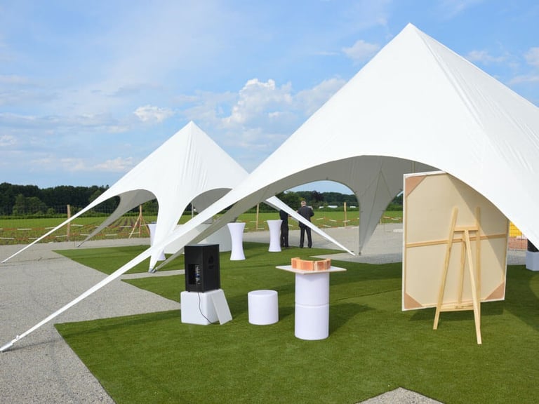 Um dynamische Begegnungsflächen zu schaffen, empfehlen wir außerdem unsere aufblasbare Event-Überdachung Airmonster und die Starfull-Zelte. Diese professionellen Eventzelte sind darauf ausgelegt, einzigartige Erlebnisse zu schaffen.