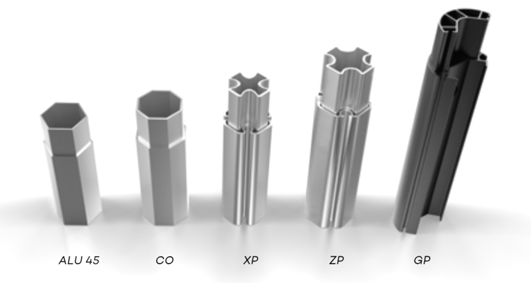 Vom Einstiegsrahmen ALU 45 bis hin zum High-End-Rahmen GP...