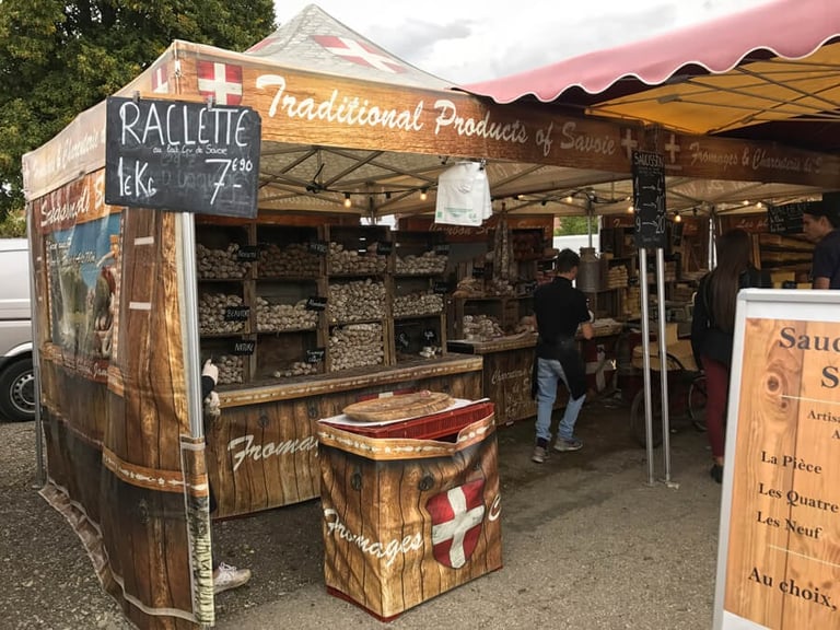 Unsere F&E-Abteilung hat optimale Lösungen für Ihren lokalen Marktstand entwickelt: leicht zu transportieren, schnell aufzubauen, mühelose Verriegelungshebel für beste Handhabung, vollständiger UV-Druck für eine erstklassige Optik, bedruckte Möbel, Banner…