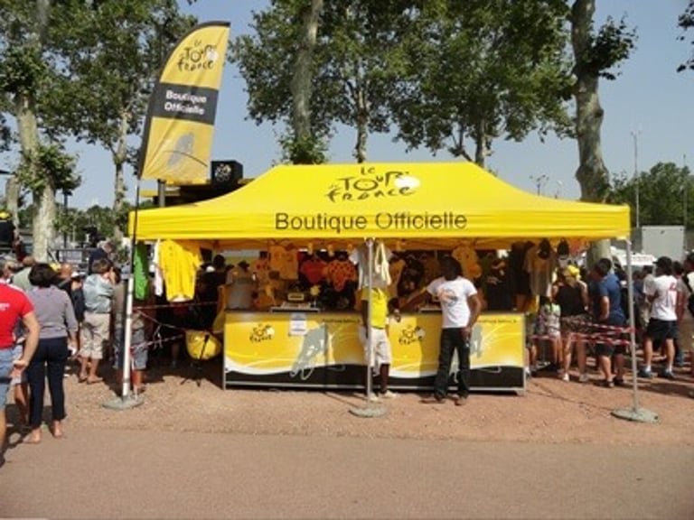 Dach, Seitenwände, Tresen, Fahnen... alle sichtbaren Flächen können mit den Farben und Logos Ihrer Wahl bedruckt werden.